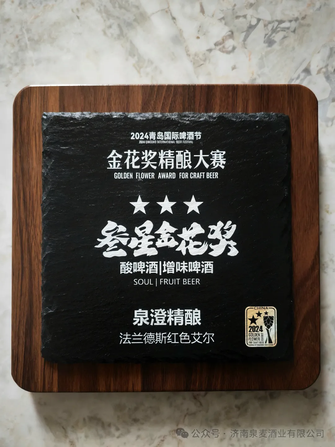 其中,泉澄精酿“法兰德斯红色艾尔”获得大赛最高荣誉“叁星金花奖”。此外,“泉澄头道博克小麦”荣获“贰星金花奖”;“过桶烈性艾尔”、“泉澄海盐古斯”2款产品分别荣获“壹星金花奖”。