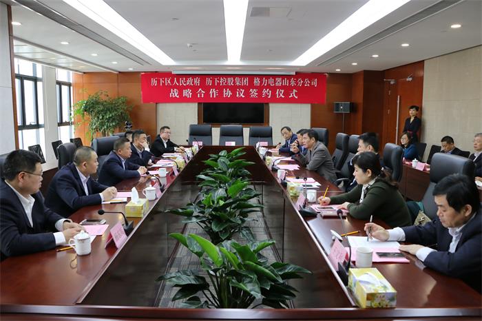 2月17日,历下区政府、历下控股集团与格力电器山东分公司战略合作协议签约仪式在历下控股集团举行。格力电器副总裁、财务总监兼董事会