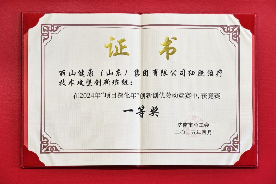 丽山健康集团细胞治疗技术攻坚创新班组获得2024 年“项目深化年”创新创优劳动竞赛班组一等奖。
