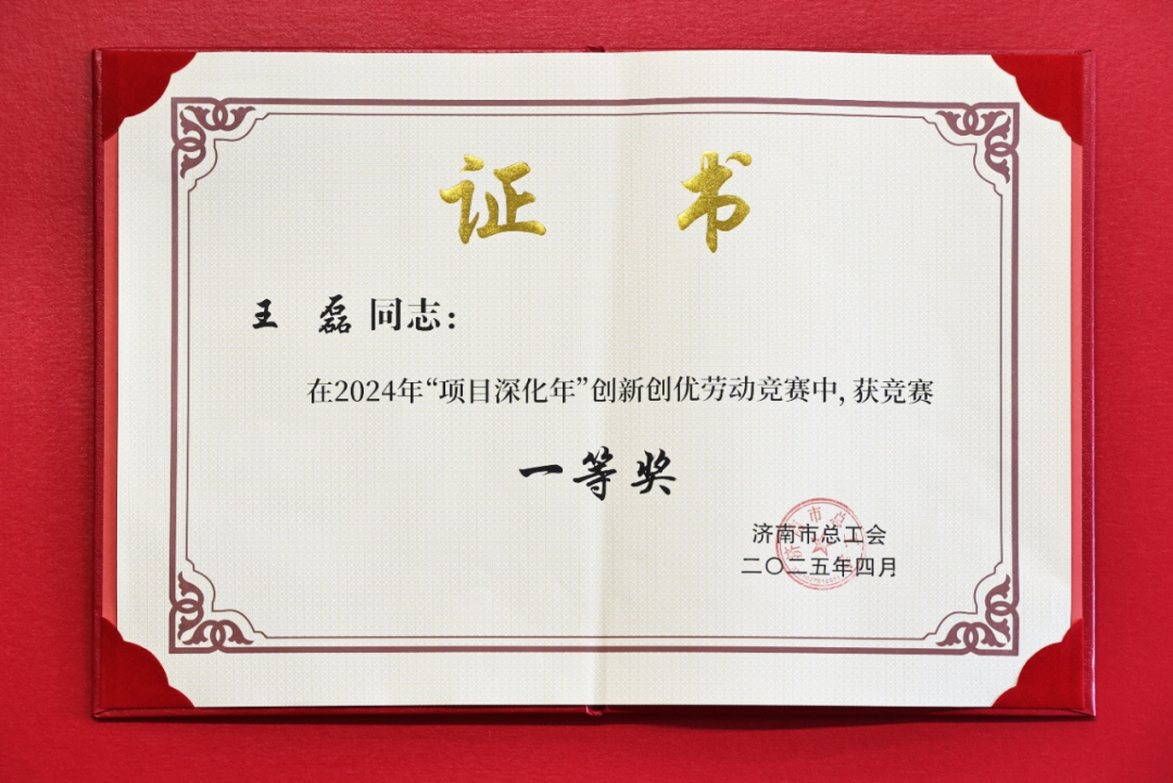 明湖发展集团王磊同志获得2024 年“项目深化年”创新创优劳动竞赛个人一等奖。