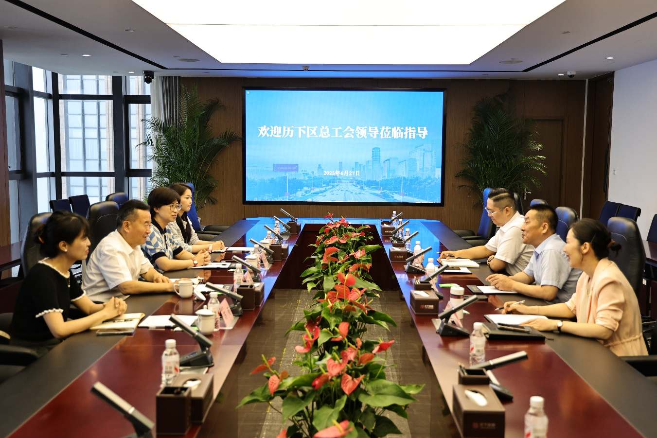 霍涛一行参观了集团企业展厅,详细了解历下控股围绕历下区“一轴、三区、多园”城市发展新格局,全面推进招商引资、项目建设、城市更新、投资融资、产业培育等重点工作情况。随后召开座谈会。会上,荆向东同志从集团建立健全工会工作机制、充分发挥桥梁纽带作用、积极开展各类文体活动等方面就2025年集团工会工作开展情况做了全面汇报。